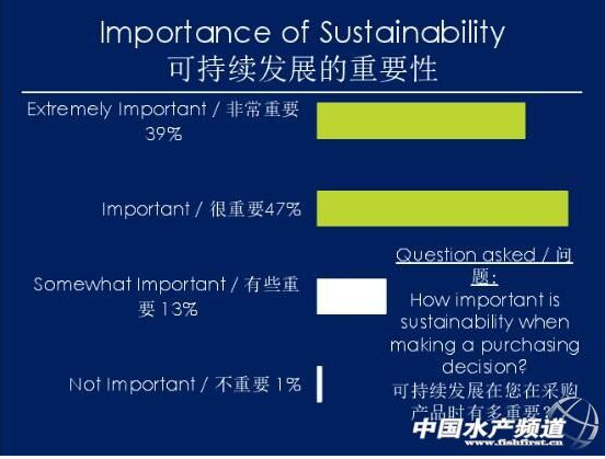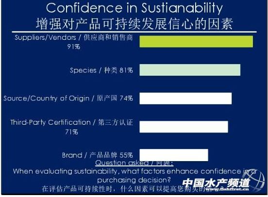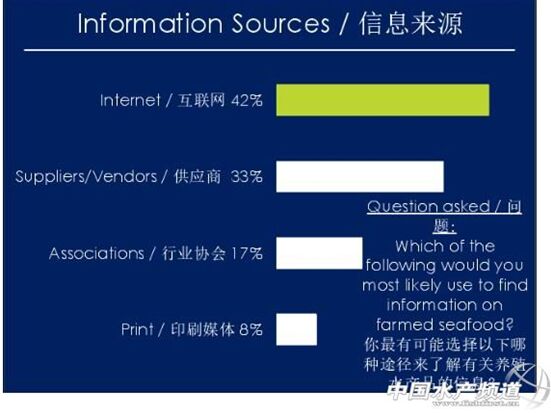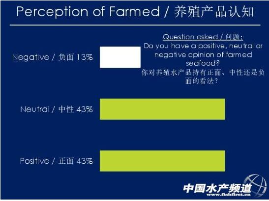 根據(jù)GAA對(duì)中國(guó)養(yǎng)殖品的國(guó)際市場(chǎng)消費(fèi)者調(diào)查表示,47%的消費(fèi)者對(duì)水產(chǎn)養(yǎng)殖產(chǎn)品持負(fù)面看法,其中27%的認(rèn)為養(yǎng)殖條件較差,23%的認(rèn)為不如野生產(chǎn)品健康,18%的人認(rèn)為對(duì)所使用飼料持懷疑態(tài)度。認(rèn)知不等于購(gòu)買,盡管很多人對(duì)水產(chǎn)養(yǎng)殖產(chǎn)品持負(fù)面看法,但是還是有將近14%的人在大多數(shù)情況下選擇養(yǎng)殖水產(chǎn)品,34%選擇一半野生、一半養(yǎng)殖,1%的僅食用養(yǎng)殖產(chǎn)品。消費(fèi)者在消費(fèi)的過(guò)程中,一般是依賴超市和廚師的推薦,這證明了超市和廚師的重要作用。消費(fèi)者對(duì)可持續(xù)發(fā)展性的信心,一半來(lái)源于超市門店,一半是來(lái)自第三方認(rèn)證。