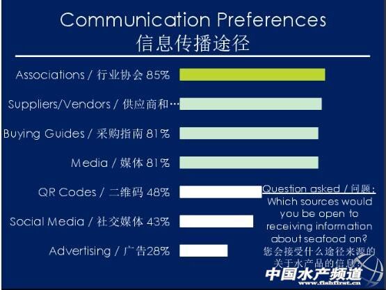 綜合消費(fèi)調(diào)查結(jié)果,我們可以得到以下結(jié)論:1、消費(fèi)者對(duì)水產(chǎn)養(yǎng)殖產(chǎn)品的認(rèn)識(shí)和購(gòu)買行為不想一致;2、消費(fèi)者依賴銷售點(diǎn)幫他們做出選擇和為他們提供信息;3、消費(fèi)者和廚師們?cè)敢饨邮芨嗟南ⅰ?br>