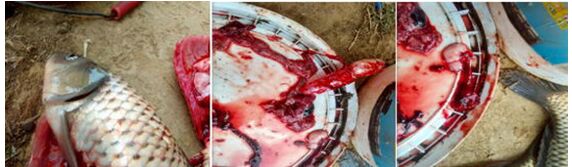 發(fā)病初期,鯉魚出現(xiàn)暗浮、漫游、厭食等現(xiàn)象,之后開始出現(xiàn)死魚,死亡量在第3~5天達到高峰,死亡率極高。