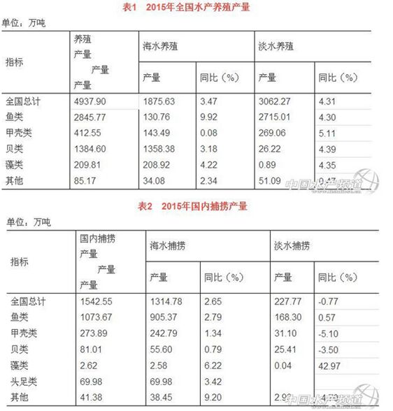 全國水產(chǎn)品總產(chǎn)量6699.65萬噸,比上年增長3.69%。其中:養(yǎng)殖產(chǎn)量4937.90萬噸,同比增長3.99%,捕撈產(chǎn)量1761.75萬噸,同比增長2.84%,養(yǎng)殖產(chǎn)品與捕撈產(chǎn)品的產(chǎn)量比例為74:26;海水產(chǎn)品產(chǎn)量3409.61萬噸,同比增長3.44%,淡水產(chǎn)品產(chǎn)量3290.04萬噸,同比增長3.94%,海水產(chǎn)品與淡水產(chǎn)品的產(chǎn)量比例為51:49。