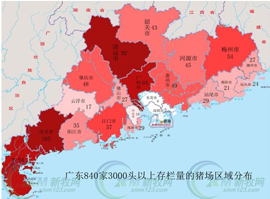 受多重因素尤其是環(huán)保壓力的影響,最近幾年廣東省豬場數(shù)量漸減,全省存欄量3000頭以上的豬場從2012年的950家減到2014年僅剩840家。廣東省生豬存欄量則從2012年的2256.63萬頭降至2014年的2130.10萬頭。