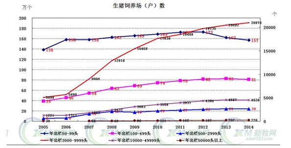 河北是養(yǎng)豬的傳統(tǒng)大省,但從數(shù)據(jù)來看,2014年相比2005年生豬出欄、存欄下降的數(shù)量都是非常大的。