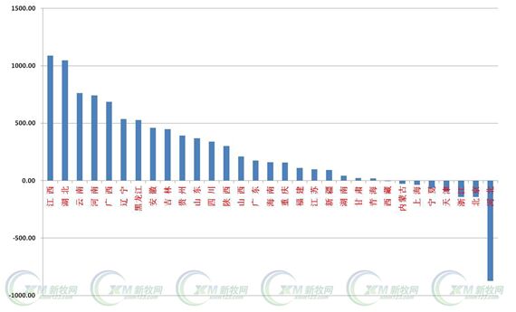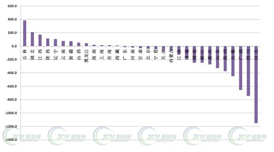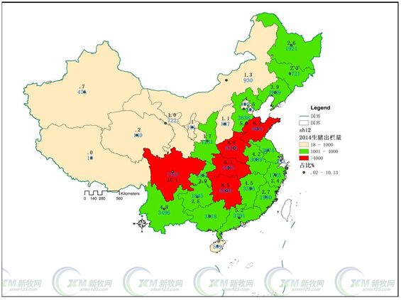 2014年全國各省份生豬存欄排序最高的是四川、河南、湖南、山東、云南。其中存欄在1000萬頭的是18個省,排在前面的依然是四川、河南、湖南。