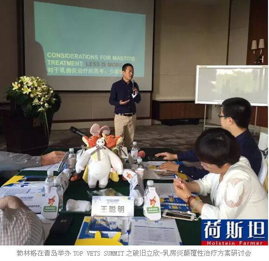 2016年勃林格公司在2015年基礎上開展針對乳房炎的“破舊立欣Less is More”服務理念。傳統上,我們習慣使用抗生素治療乳房炎直到臨床癥狀消失,但這并不科學。乳房炎的發(fā)生首先是由病原體感染乳房,牛機體防御反應產生炎癥,是病原體+炎癥反應的結合(紅腫熱痛),但很多從業(yè)者并不了解兩者間的差別,以為抗生素殺菌的同時也可以消除炎癥。事實上,抗生素的作用是殺菌,炎癥需要使用非甾體類抗炎藥來控制。其實,很多病原菌如大腸桿菌感染乳房后,機體本身免疫系統會殺死病原菌,人類看到的臨床癥狀都是炎癥反應,但抗生素對炎癥的消除并無作用,我們需要反思牧場在乳房炎防治中連續(xù)長期使用乳區(qū)注入抗生素是否有必要。從全球角度來講,抗生素的濫用越來越嚴重,勃林格不希望因為抗生素濫用給牧場增加成本,同時造成交叉抗藥性,我們正在嘗試告訴客戶將抗炎和消菌分開處理。