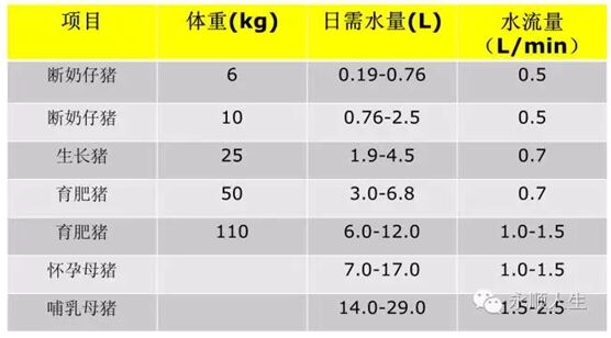 水是豬機(jī)體重要的組成部分之一,水對(duì)飼料的消化、吸收和豬體溫調(diào)節(jié)等生理機(jī)能起著十分重要的作用。高溫環(huán)境中,豬以蒸發(fā)散熱為主,飲水量增加,通過急促的呼吸將呼吸道的水汽排出體外,以水汽帶走體內(nèi)余熱。夏季豬場(chǎng)豬群飲水需要注意水壓和水溫,水壓過低,水流量不足會(huì)降低豬群采食量。供水管應(yīng)包有隔熱層或埋在土層下,防止太陽(yáng)暴曬使水溫升高。
