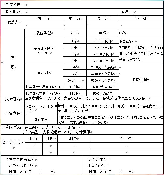 3、在大會現(xiàn)場贈送標準展位2個,彩虹門1座,條幅2條。贈送《中國北方畜牧業(yè)交易會會刊》彩頁宣傳一個。