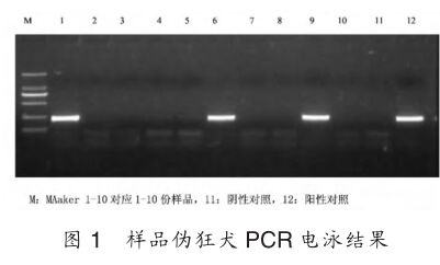應(yīng)用北京世紀(jì)元亨動(dòng)物防疫技術(shù)有限公司偽狂犬病毒PCR檢測試劑盒,對采集的病料進(jìn)行病原學(xué)檢測,結(jié)果見圖1。