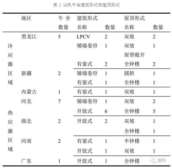 2.1 冷熱應(yīng)激區(qū)域牛舍建筑形式、屋頂形式及屋面材料分析