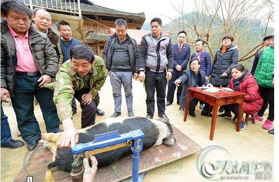 2月14日,龍勝縣江底鄉(xiāng)龍?zhí)链迮e行精準(zhǔn)扶貧委托養(yǎng)殖收購儀式,集中收購當(dāng)?shù)刎毨Т迕褡约茵B(yǎng)殖的生態(tài)土豬,貧困村民在領(lǐng)到生態(tài)土豬養(yǎng)殖的“第一桶金”后喜笑顏開。