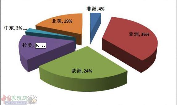 從2012年開始,全球飼料產(chǎn)量9.54億噸,到2016年突破10億噸,累計(jì)增長了19%,今年飼料廠數(shù)量的下降也意味著行業(yè)整合度和生產(chǎn)效率均不斷提升。1、 2016全球不同區(qū)域飼料生產(chǎn)情況