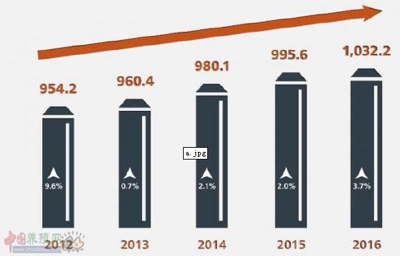 2012-2016年全球飼料產(chǎn)量(百萬噸).jpg