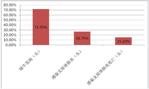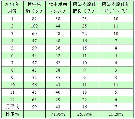 犢牛患支原體肺炎的比率由活動前的26.79%,降低到活動后的14%,犢牛死亡率由活動前的15.2%,降低到5%以內(nèi)。