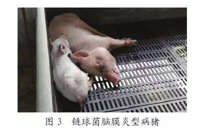 主要表現(xiàn)為多發(fā)性關(guān)節(jié)炎,患豬體溫升高,被毛粗亂,食欲不佳,逐漸消瘦。病豬眼睛潮紅,腦膜炎型時(shí)豬眼球會(huì)斜向一方(見(jiàn)圖3)。