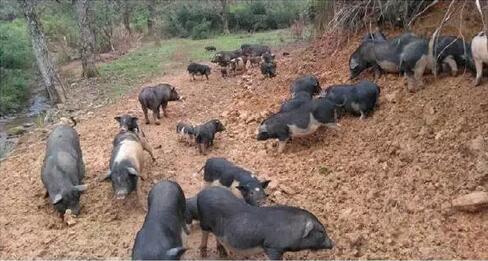 1.5、極低飼料費,緩解糧食偏緊矛盾。每天僅需飼喂少量精料1~2餐,大部分時間任由豬只自由采食野草、草根、葛根和野果等,大大降低了飼養(yǎng)成本,緩解糧食偏緊矛盾。