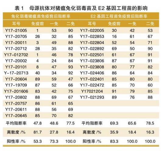 本次研究結(jié)果表明E2基因工程苗既能產(chǎn)生較好的免疫應(yīng)答反應(yīng)同時(shí)又可對(duì)抗母源抗體的干擾。