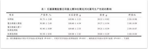 2.1羥基蛋氨酸螯合微量元素和抗氧化劑對(duì)蛋雞生產(chǎn)性能的影響
