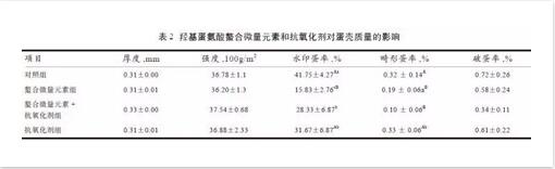 2.2、羥基蛋氨酸螯合微量元素和抗氧化劑對(duì)蛋殼質(zhì)量的影響
