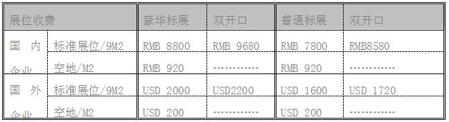 注:1.標準展位包括地毯、三面圍板、公司名稱楣板、咨詢桌一張、折椅兩把、 射燈兩盞、電源插座一個(特殊用電請事先說明,另行收費)。