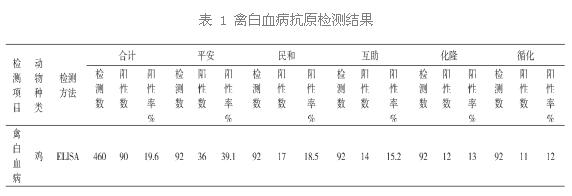(1)此次試驗(yàn)共檢測(cè)雞血清460份,其中陽(yáng)性90份,陽(yáng)性率為19.6%。檢測(cè)結(jié)果表明,海東地區(qū)雞群有白血病的感染,且感染率比較高。以上五個(gè)地區(qū)都檢出了陽(yáng)性者,陽(yáng)性率均超過(guò)10%,表明各地區(qū)都有不同程度的禽白血病感染。