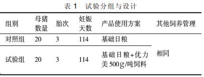 (2)制劑與日糧。優(yōu)力美由重慶優(yōu)寶提供,母豬基礎(chǔ)日糧由昆明臺廚飼料科技有限公司供應(yīng)。