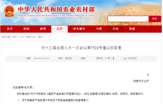 下一步,我部將按照國務(wù)院“放管服”改革精神,進一步加大工作力度,進一步優(yōu)化獸藥審批程序和工作機制,簡化要求,提高審批工作效率,更好地為獸藥行業(yè)發(fā)展服務(wù)。