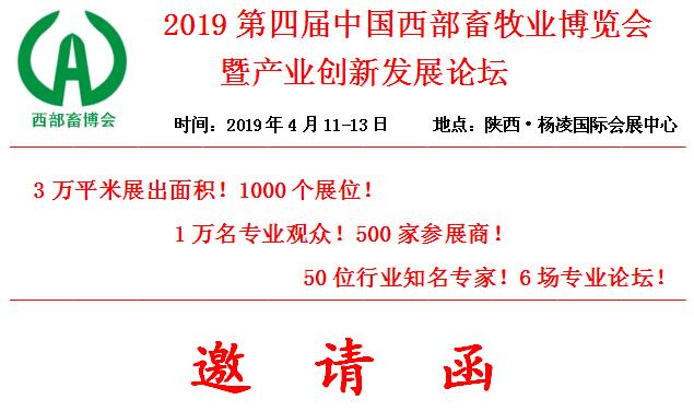 “2019第四屆中國西部畜牧業(yè)博覽會暨產(chǎn)業(yè)創(chuàng)新發(fā)展論壇” 將于2019年4月11--13日在陜西·楊凌國際會展中心繼續(xù)舉辦。組委會在秉承上屆成功經(jīng)驗的同時,將加大組織和宣傳力度,廣泛邀請和組織國內(nèi)外知名企業(yè)參展,更全面的展示畜牧業(yè)生產(chǎn)中應用的新技術(shù)、新產(chǎn)品、新設備、新工藝、新模式,加強行業(yè)間的交流合作。創(chuàng)新發(fā)展論壇將邀請國內(nèi)外知名專家、學者、名企領導圍繞國家產(chǎn)業(yè)政策,目前形勢、發(fā)展趨勢、存在問題、應對策略,進行高水平的技術(shù)宣講、互動交流。