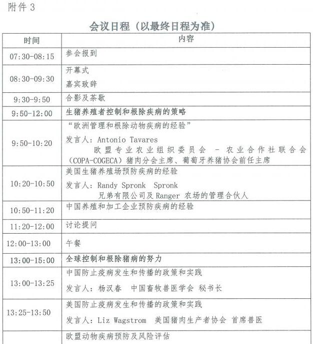 六、參會辦法:有意參會者請?zhí)顚?019第七屆中美豬業(yè)發(fā)展研討會報名回執(zhí)表(見附件2)并發(fā)送到郵箱zhaoyining@caaa.cn