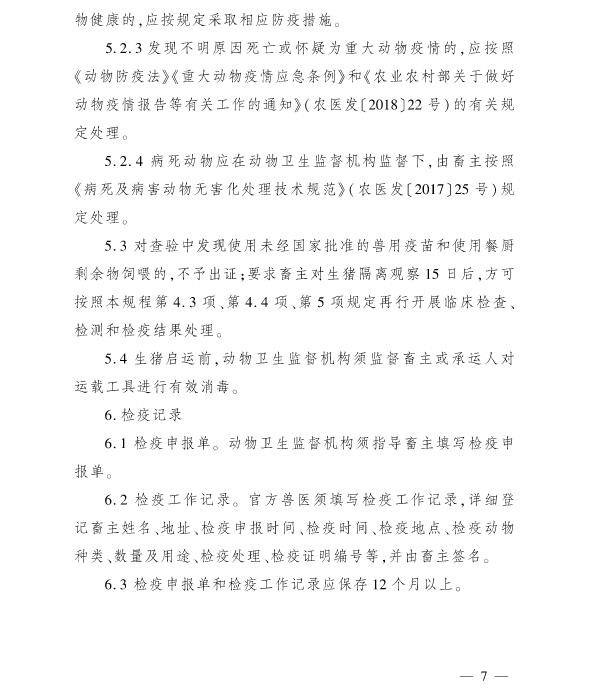 現(xiàn)將上述檢疫規(guī)程印發(fā)你們,請嚴格遵照執(zhí)行?!掇r(nóng)業(yè)農(nóng)村部關于印發(fā)〈生豬產(chǎn)地檢疫規(guī)程〉和〈生豬屠宰檢疫規(guī)程〉的通知》(農(nóng)牧發(fā)〔2018〕9號)中附件《生豬產(chǎn)地檢疫規(guī)程》《生豬屠宰檢疫規(guī)程》和《農(nóng)業(yè)部關于印發(fā)〈跨省調(diào)運種禽產(chǎn)地檢疫規(guī)程〉及〈跨省調(diào)運乳用種用動物產(chǎn)地檢疫規(guī)程〉的通知》(農(nóng)醫(yī)發(fā)〔2010〕33號)中附件2《跨省調(diào)運乳用種用動物產(chǎn)地檢疫規(guī)程》同時廢止。