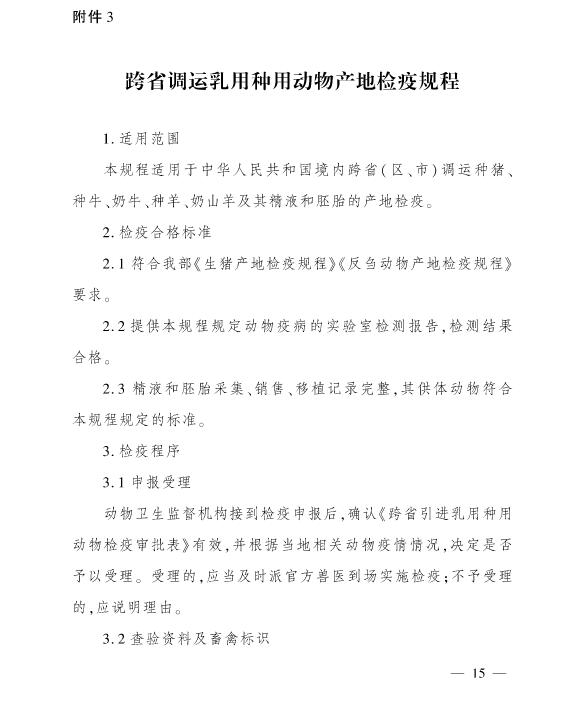 3. 跨省調(diào)運乳用種用動物產(chǎn)地檢疫規(guī)程