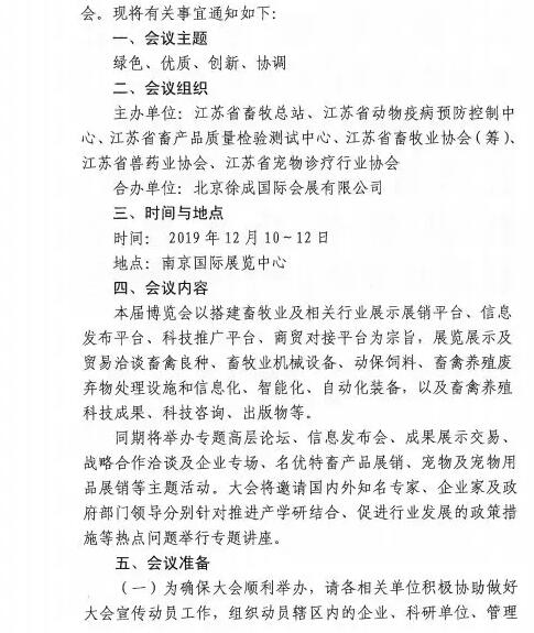 1、大會(huì)名稱:2019華東地區(qū)畜牧業(yè)博覽會(huì)暨2019第四屆江蘇畜牧業(yè)博覽會(huì)