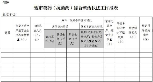 各盟市獸醫(yī)管理部門在每月10日前,將本盟市上月的獸藥市場整治工作進(jìn)展情況按統(tǒng)一要求(見附件),用電子版上報(bào)自治區(qū)農(nóng)牧廳(郵箱:nmgsyjsy@163.com)。