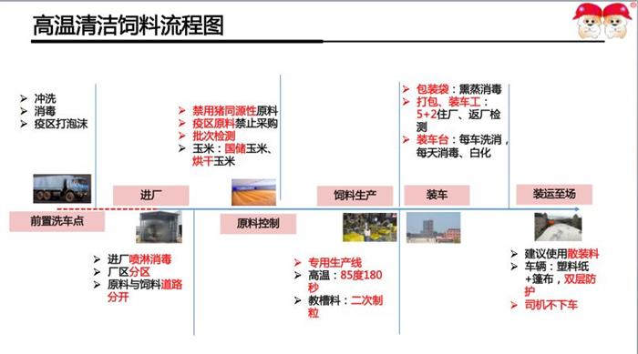 對(duì)于防控飼料傳播的危害,鮑董事長(zhǎng)認(rèn)為,繼續(xù)使用自配料、低溫料無異于引火燒身,不少地方政府在出臺(tái)防控非洲豬瘟指導(dǎo)文件中已指出,停止配料加工、添置高溫制粒設(shè)備或者全國(guó)采購(gòu)全價(jià)料,高溫制粒才是阻斷飼料傳播的最后一道防線。