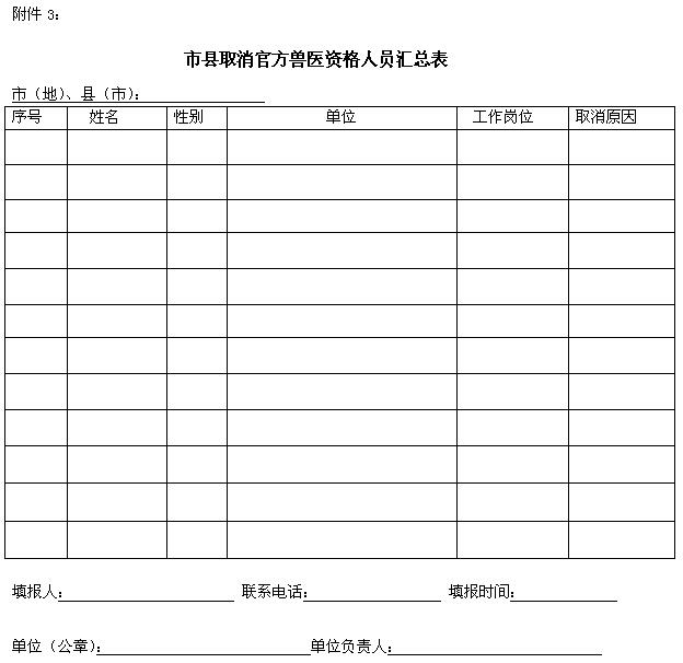 3、市縣取消官方獸醫(yī)資格人員匯總表(附件3)