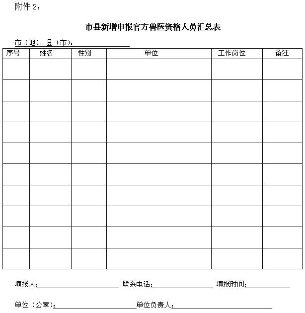 2、市縣新增申報官方獸醫(yī)人員匯總表(附件2)