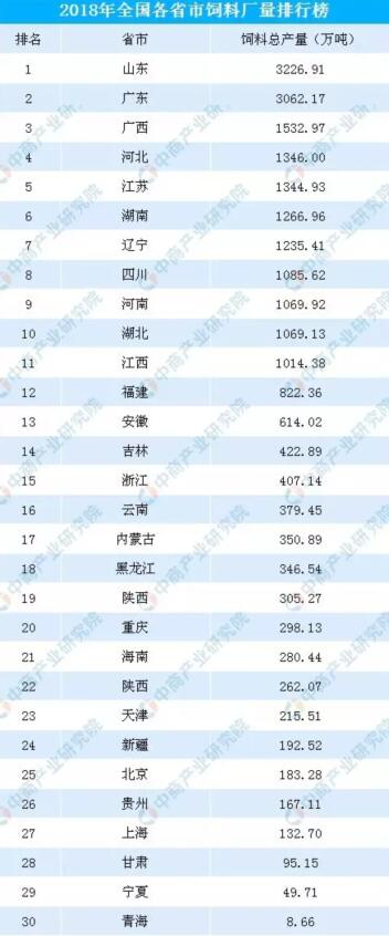 在2018年全國(guó)各省市飼料產(chǎn)量排行榜上,十強(qiáng)省合計(jì)產(chǎn)量占全國(guó)比重71.3%,比上年提高1.7個(gè)百分點(diǎn)。飼料產(chǎn)量超千萬(wàn)噸的省份達(dá)11個(gè),比上年新增1個(gè);山東和廣東的單省產(chǎn)量首次突破3000萬(wàn)噸,總產(chǎn)值分別達(dá)1353億元和1187億元,總產(chǎn)量和產(chǎn)值均比第二梯隊(duì)前列的省份多一倍。全國(guó)共有11個(gè)省市全年飼料總產(chǎn)量超1000萬(wàn)噸。另外全國(guó)有4家企業(yè)集團(tuán)年產(chǎn)量超過(guò)1000萬(wàn)噸,比上年增加2家,合計(jì)產(chǎn)量4760萬(wàn)噸,占全國(guó)產(chǎn)量比重為21%。