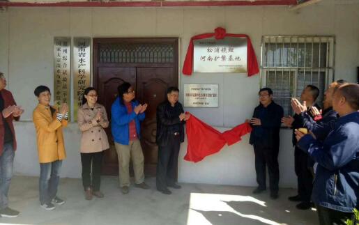 國(guó)家大宗淡水魚產(chǎn)業(yè)技術(shù)體系“松浦鏡鯉河南擴(kuò)繁基地”在體系鄭州綜合試驗(yàn)站(河南省水產(chǎn)科學(xué)研究院試驗(yàn)中心)掛牌成立。體系“鯉種質(zhì)資源與品種改良”崗位科學(xué)家、黑龍江所副所長(zhǎng)石連玉研究員與鄭州綜合試驗(yàn)站站長(zhǎng)李治勛研究員共同為擴(kuò)繁基地揭牌。