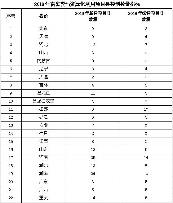 附件:2019年畜禽糞污資源化利用項(xiàng)目縣控制數(shù)量指標(biāo)