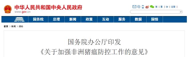 國務院辦公廳關于加強非洲豬瘟防控工作的意見