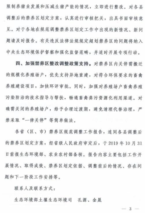 通知強(qiáng)調(diào),要落實(shí)工作責(zé)任,堅(jiān)決、迅速取消排查中發(fā)現(xiàn)的超出法律法規(guī)的禁養(yǎng)規(guī)定和超劃的禁養(yǎng)區(qū)。對(duì)違反法律法規(guī)限制養(yǎng)豬業(yè)發(fā)展和壓減生豬產(chǎn)能的情況,要立即進(jìn)行整改。生態(tài)環(huán)境部將有關(guān)違反法律法規(guī)規(guī)定超劃禁養(yǎng)區(qū)的問題納入中央生態(tài)環(huán)境保護(hù)督察和強(qiáng)化監(jiān)督范疇,并適時(shí)開展專項(xiàng)行動(dòng)。