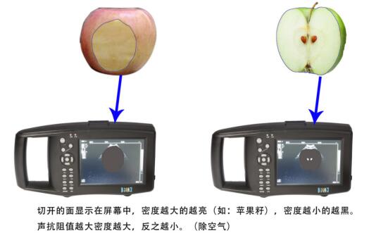 探頭發(fā)出聲波后遇到物體又被反射回來,經(jīng)過處理,由于聲抗阻值不同形成不同灰度的圖像。通俗簡單的說就是:探頭就像一把刀,把物體切開。切開的切面顯示在主機屏幕上,只不過是用不同的黑和白表示不同的密度。密度越大,反射形成的圖像就越亮,密度越小反射形成的圖像就越黑。在豬的體內(nèi),密度最小的就是液體,(包括羊水、尿液、血液、積液等)密度最大的是骨骼(在測孕中通常指的是胎體的骨骼)。
