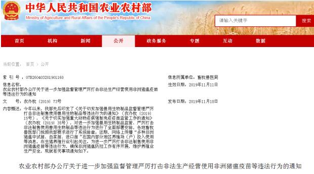 各地打擊非法生產(chǎn)銷售使用非洲豬瘟疫苗等違法行為的相關(guān)工作進(jìn)展情況,要及時(shí)報(bào)我部畜牧獸醫(yī)局。