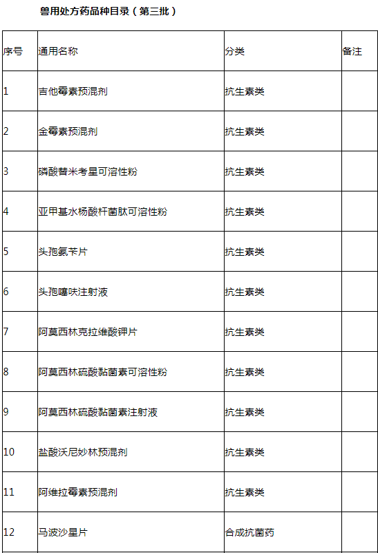 根據(jù)《獸藥管理條例》和《獸用處方藥和非處方藥管理辦法》規(guī)定,我部組織制定了《獸用處方藥品種目錄(第三批)》,現(xiàn)予發(fā)布,自發(fā)布之日起施行。對列入目錄的獸藥品種,獸藥生產(chǎn)企業(yè)按照有關(guān)要求自行增加“獸用處方藥”標識,印制新的標簽和說明書。原標簽和說明書,獸藥生產(chǎn)企業(yè)可繼續(xù)使用至2020年6月30日,此前使用原標簽和說明書生產(chǎn)的獸藥產(chǎn)品,在產(chǎn)品有效期內(nèi)可繼續(xù)銷售使用。