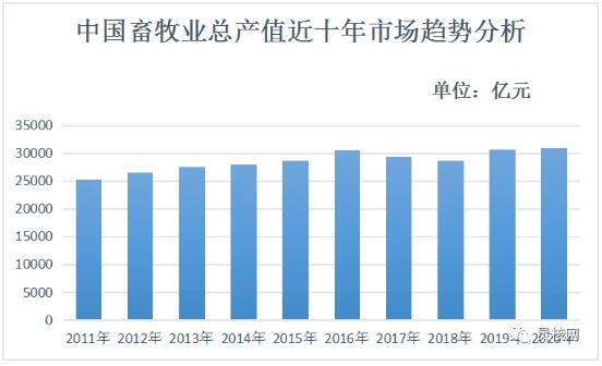 據(jù)統(tǒng)計(jì)局?jǐn)?shù)據(jù)顯示,2016年國內(nèi)畜牧業(yè)產(chǎn)值達(dá)30461.17億元,到2018年產(chǎn)值下降到28697.4億元。據(jù)2016年政府發(fā)布的《全國農(nóng)業(yè)現(xiàn)代化規(guī)劃(2016—2020年)》提出,到2020年我國畜牧業(yè)產(chǎn)值占農(nóng)業(yè)總產(chǎn)值比重超30%。