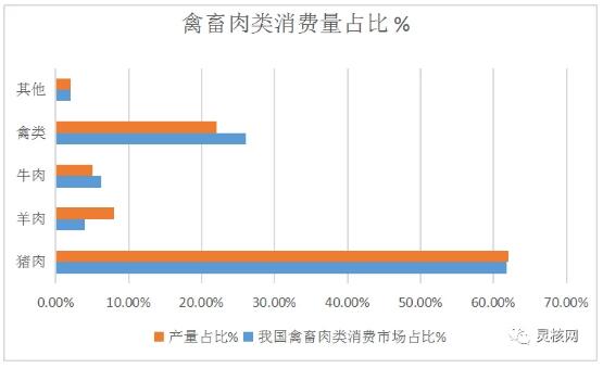 中國禽畜肉類生產(chǎn)量及消費(fèi)占比