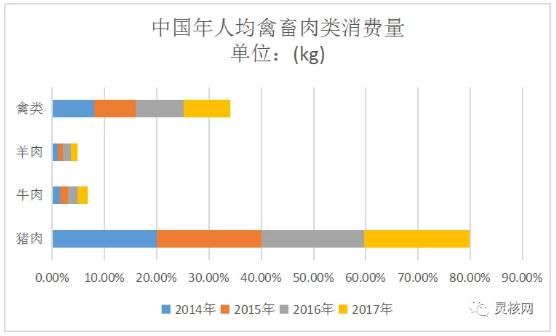 中國禽畜肉類人均年消費(fèi)量(kg)
