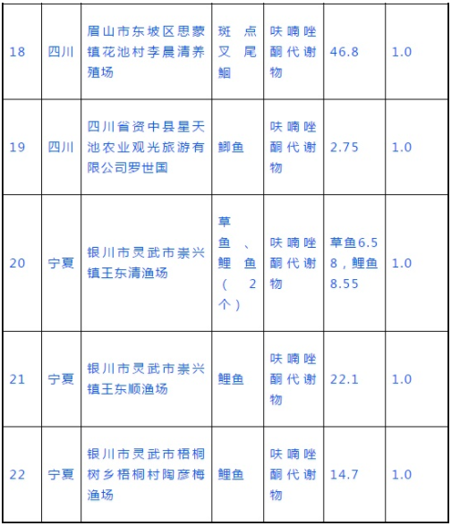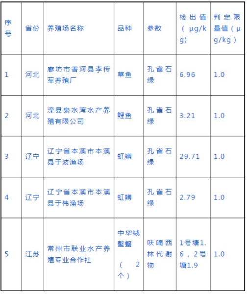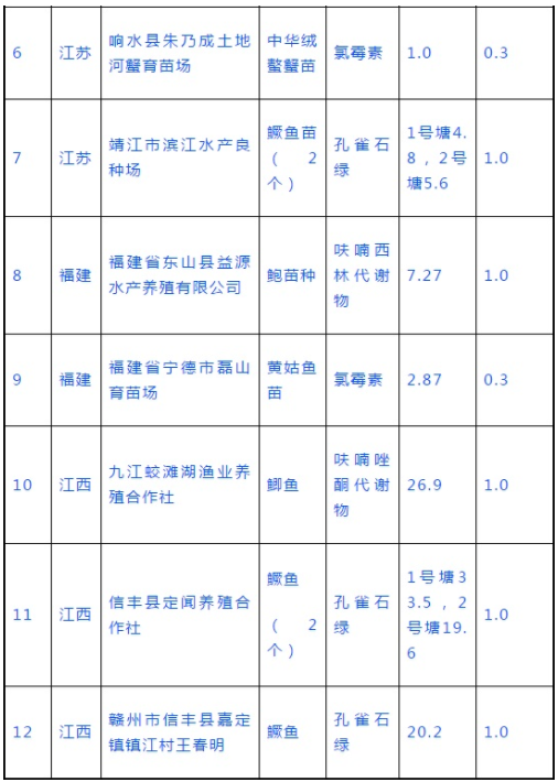 2019年國家產(chǎn)地水產(chǎn)品獸藥殘留監(jiān)控檢出不合格樣品的養(yǎng)殖場名單