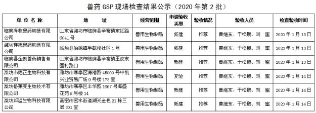 山東:2020年第2批獸藥GSP現(xiàn)場檢查結(jié)果公示