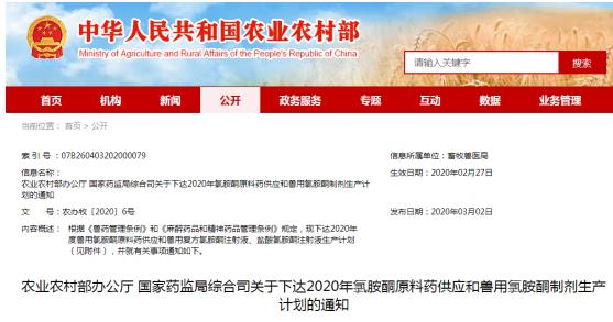 根據(jù)《獸藥管理?xiàng)l例》和《麻醉藥品和精神藥品管理?xiàng)l例》規(guī)定,現(xiàn)下達(dá)2020年度獸用氯胺酮原料藥供應(yīng)和獸用復(fù)方氯胺酮注射液、鹽酸氯胺酮注射液生產(chǎn)計(jì)劃(見(jiàn)附件),并就有關(guān)事項(xiàng)通知如下。