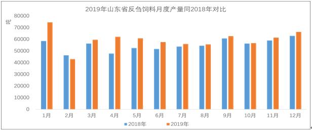 圖7 2019年山東省反芻飼料月度產(chǎn)量同2018年對(duì)比