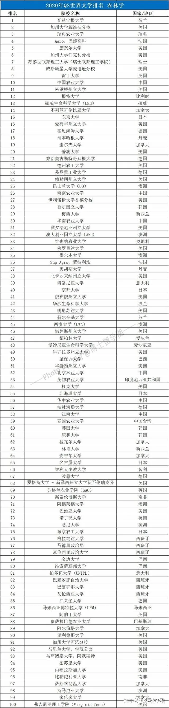 今年發(fā)布的《2020年QS世界大學(xué)學(xué)科排名》榜單中,共有401所頂尖的農(nóng)林學(xué)高等教育院校,前100強(qiáng)的榜單中,美國(guó)是入榜最多的國(guó)家,共計(jì)28所排名前一百位置,3所進(jìn)入了進(jìn)入了世界前十。